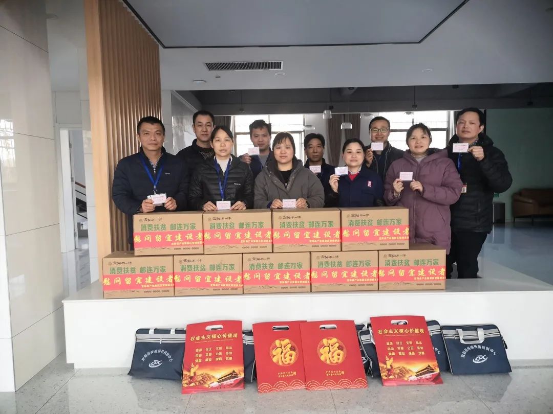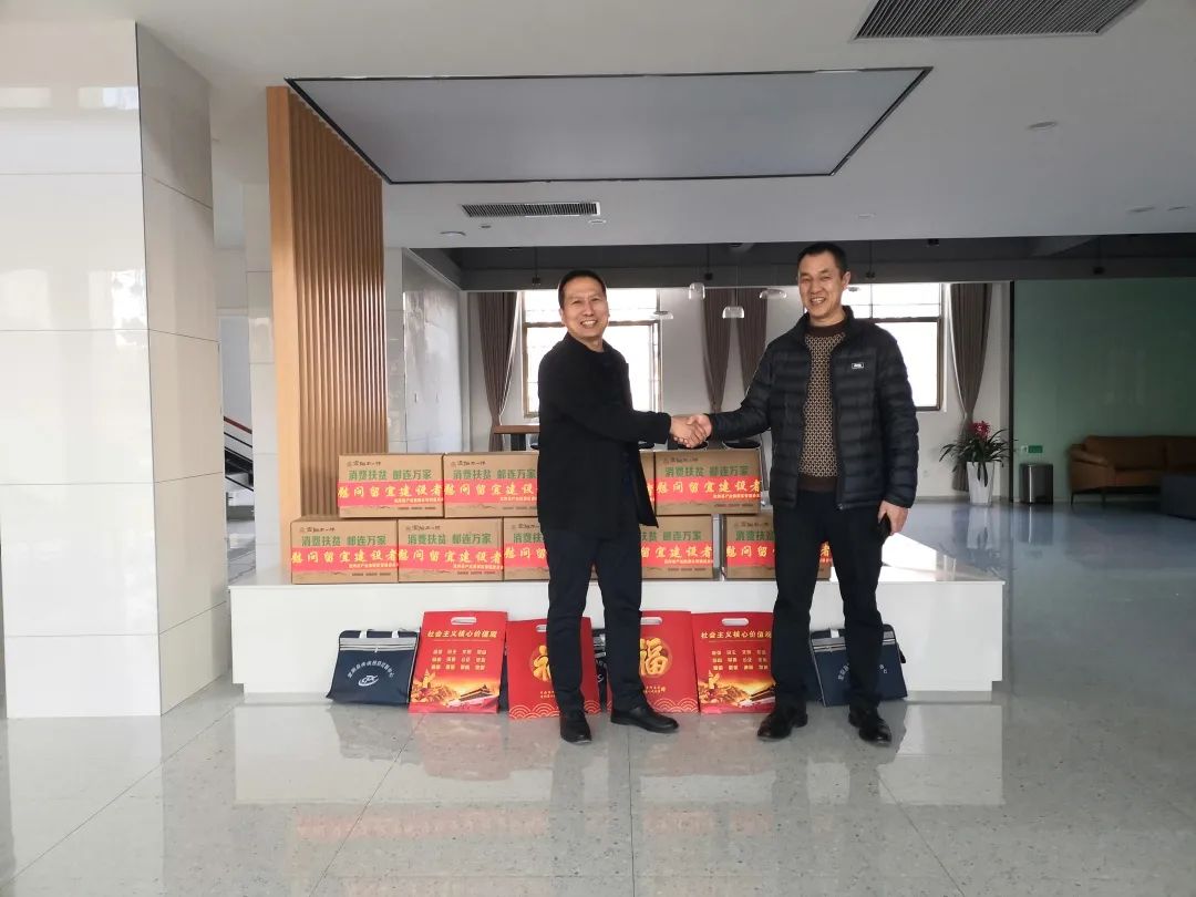 王錫韜主任攜其領(lǐng)導(dǎo)班子一起為我司春節(jié)駐廠員工送來了消毒防疫物資、宜陽年貨特產(chǎn)大禮包和新年春聯(lián),預(yù)祝源氏2021年生意紅紅火火。