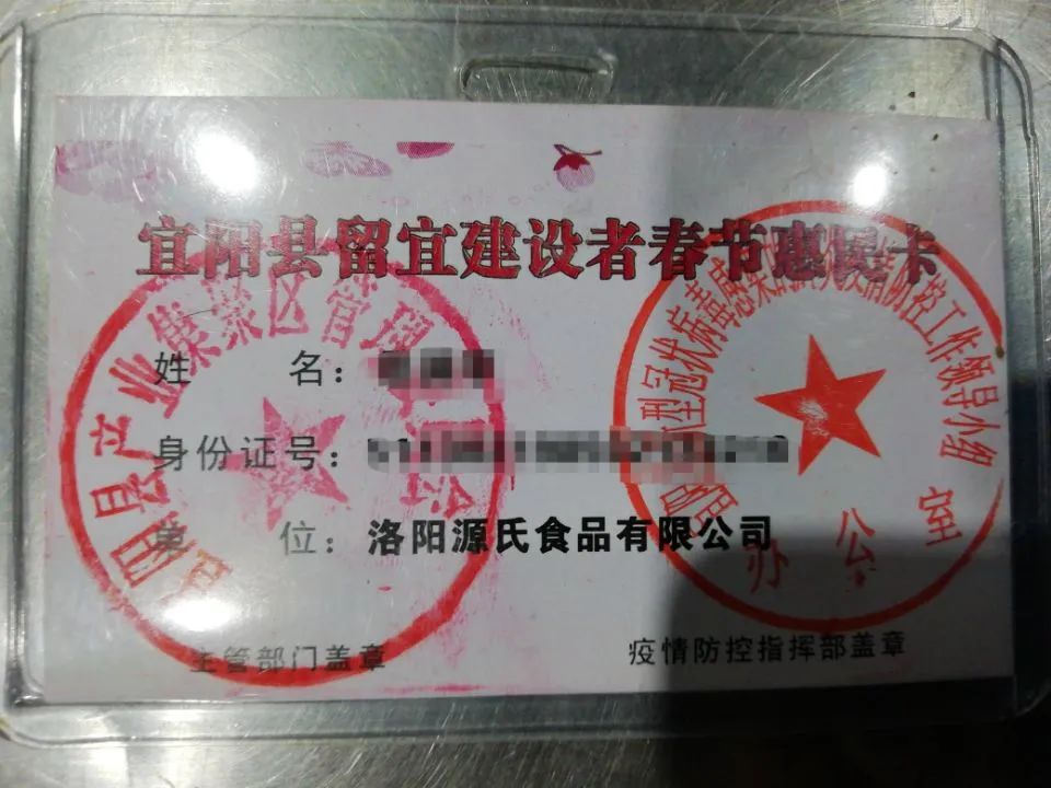 園區(qū)領(lǐng)導(dǎo)為源氏春節(jié)駐廠人員發(fā)放“宜陽縣留宜建設(shè)者春節(jié)惠民卡”,在春節(jié)期間2021年2月1日—2021年2月28日期間,留宜人員可以免費(fèi)乘坐縣內(nèi)公交、免費(fèi)游玩縣內(nèi)任何旅游景點(diǎn),縣區(qū)內(nèi)的圖書館、城市書屋、文化館等為留宜人員正常開放。